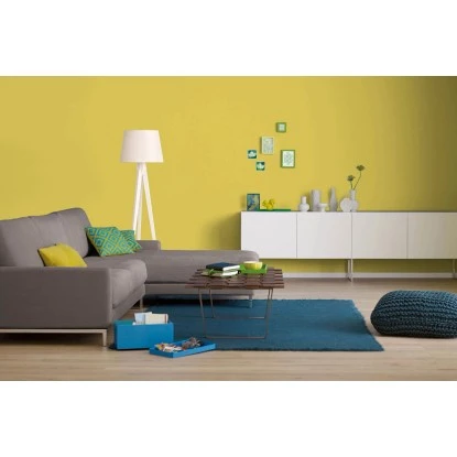 Alpina Farbrezepte Sommerzeit ist ein positiver Farbton, der besonders als Akzentton seine ganze Kraft zeigt. Das satte Bananengelb regt die Kreativität an, was durch die Farben von einfach inspiriert noch verstärkt werden kann, indem man sie als Ergänzung zur akzentuierten Fläche kombiniert.