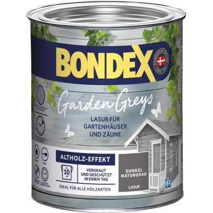 Die Bondex Garden Greys Lasur schützt und pflegt neue und alte Hölzer im Außenbereich. Sie macht das Holz wetterfest und wasserabweisend. Die Holzflächen erhalten durch die Lasur einen dekorativen Altholz-Effekt und eine gleichmäßig vergraute Patina.