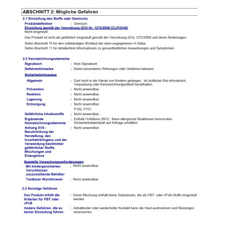 | Für Allergiker auf Isothiazolinone geeignet | Nicht geeignet |