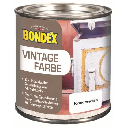 Bondex Vintage Farbe dient als Grundierung zur Weiterbehandlung mit Bondex Vintage Wachs oder auch als Endbeschichtung für Vintage-Effekte auf Möbeln im Innenbereich. Zur individuellen Gestaltung von unbehandelten Möbelstücken und zusätzlich nutzbar als dekorativ deckender Anstrich in besonderen Farbtönen. Farbtöne sind miteinander kombinierbar. Die Holzoberfläche erhält neuen Glanz und Farbe.