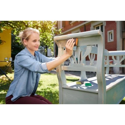 Die 15-teilige Bosch DIY Handschleif-Set ist ein projektorientiertes Aufarbeitungs-Set für den Handschliff. Die verschiedenen Handschleifmittel werden in einer praktischen Projekt-Box verkauft. So haben Sie alle nötigen Werkzeuge für unterschiedliche Schleifprojekte gebündelt und immer gRiffbereit.