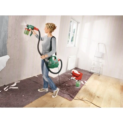 Das Bosch Feinsprühsystem PFS 3000-2 ist ein vielseitiges Farbsprühsystem mit höchster Bedienerfreundlichkeit für alle Streichprojekte und für das einfache Versprühen aller Farbarten. Sie können dabei wählen, ob Sie Wandfarbe, Lacke oder Lasuren versprühen möchten. Das praktische SDS-System ermöglicht ein schnelles Nachfüllen der Farbe und eine einfache Reinigung des Systems. Der ConstantFeed-Farbbehälter des Feinsprühsystems stellt eine gleichbleibende Farbversorgung sicher, auch bei Arbeiten über Kopf oder in Bodennähe.
