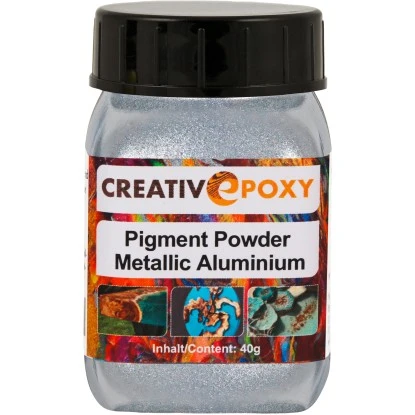 Das CreativEpoxy Pigment Pulver 40 g Aluminium Metallic ist ein hochergiebiges Pulverpigment zur effektvollen Farbgebung von Epoxid Design Gießharzen. Es kann in Kombination mit allen weiteren Pulver- und Flüssigpigmenten verwendet werden.