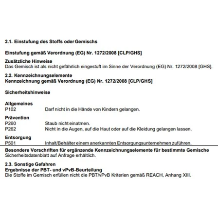 Das Pulverpigment ist schnell löslich und sehr ergiebig. Die Farbpigmentierung ist witterungsfest und UV-beständig.