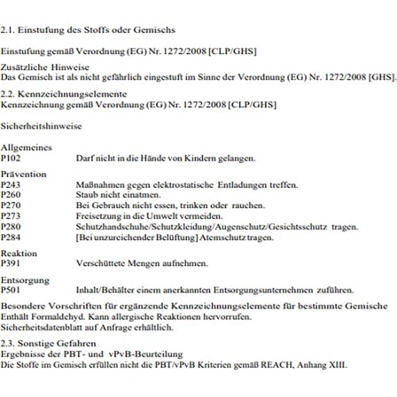 Das Tagesleuchtpigment ist schnell löslich und sehr ergiebig. Die Farbpigmentierung ist witterungsfest und UV-beständig.