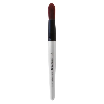 Graduate XL Stiff Synthetic Round 40 Pinsel mit langem Griff, perfekt für die Malerei mit Acryl- und Ölfarben. Mit seiner runden Kopfform und großen Größe ist dies ein vielseitiger Pinsel für alles, was runde Formen und Kurven sowie allgemeine Verwaschungen benötigt.