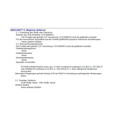 | Für Allergiker auf Isothiazolinone geeignet | Nicht geeignet |