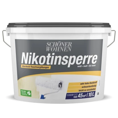 Leicht zu verarbeitende, hochdeckende Spezialdispersion, die Nikotinvergilbungen überdeckt. Der ideale Problemlöser zur schnellen Renovierung nikotinbelasteter Wand- und Deckenflächen auf z. B. Raufaser und Prägetapeten, alten Dispersionsfarbenanstrichen, Gipskarton- und Zementfaserplatten sowie Mauerwerk, Putz und Beton.