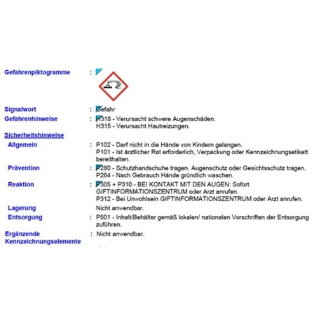 | Verbrauch pro m² in ml | 8 m²/l |